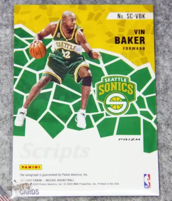 2019-20 Vin Baker #SC-VBK Panini Mosaic Scripts Silver Prizm Autograph