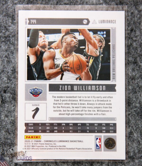 2020-21 Zion Williamson #144 Panini Chronicles Luminance