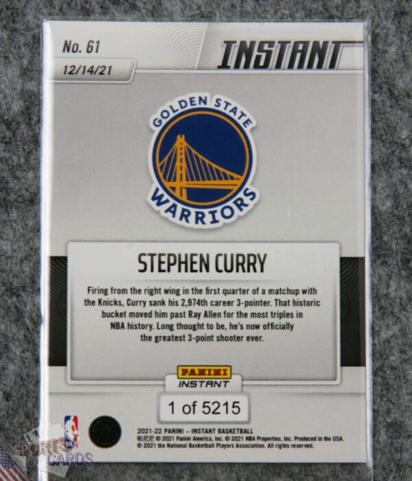 2021-22 Stephen Curry #61 Panini Instant Record Breaker 1/5215