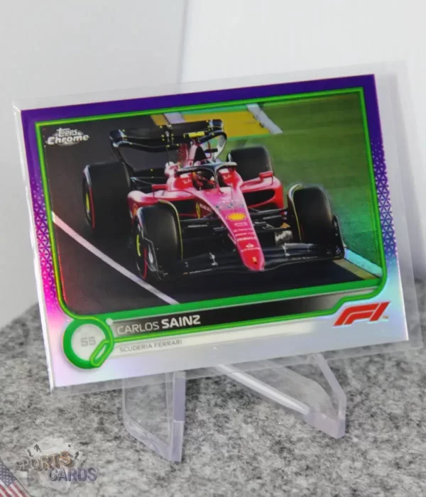 2022 Carlos Sainz #31 Topps Chrome F1 Scuderia Ferrari Purple Green Refractor SP