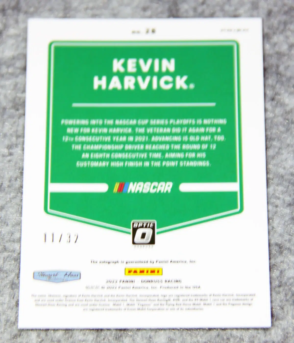 2022 Kevin Harvick #28 Panini Nascar Donruss Optic Holo Prizm Autograph /32