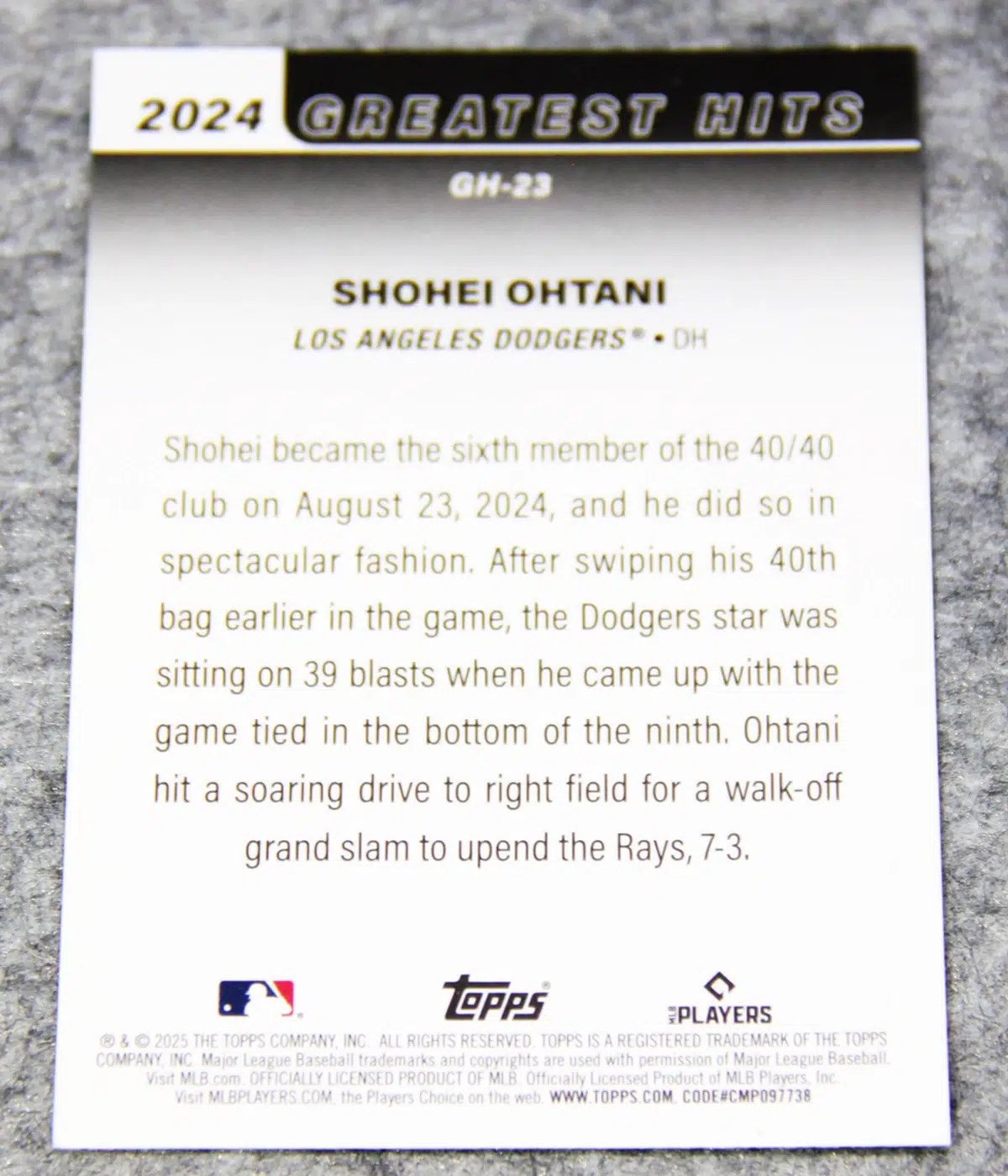 - Set: Topps Baseball Series 1 2024 Greatest Hits Walk-Off Grand Slam to 40/40 Player
