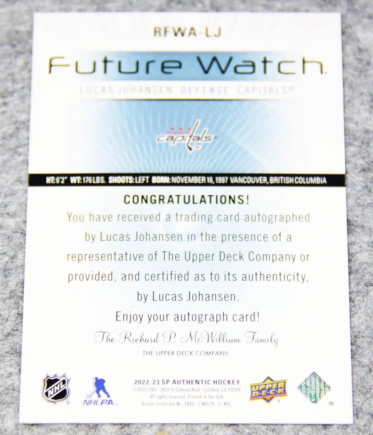 SKU: Lucas Johansen - Washington Capitals - Card #RFWA-LJ