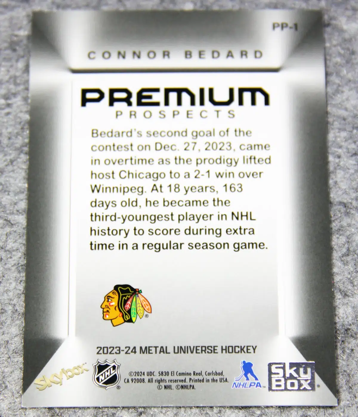 2023-24 Connor Bedard #PP-1 SkyBox Metal Universe Premium Prospects RC