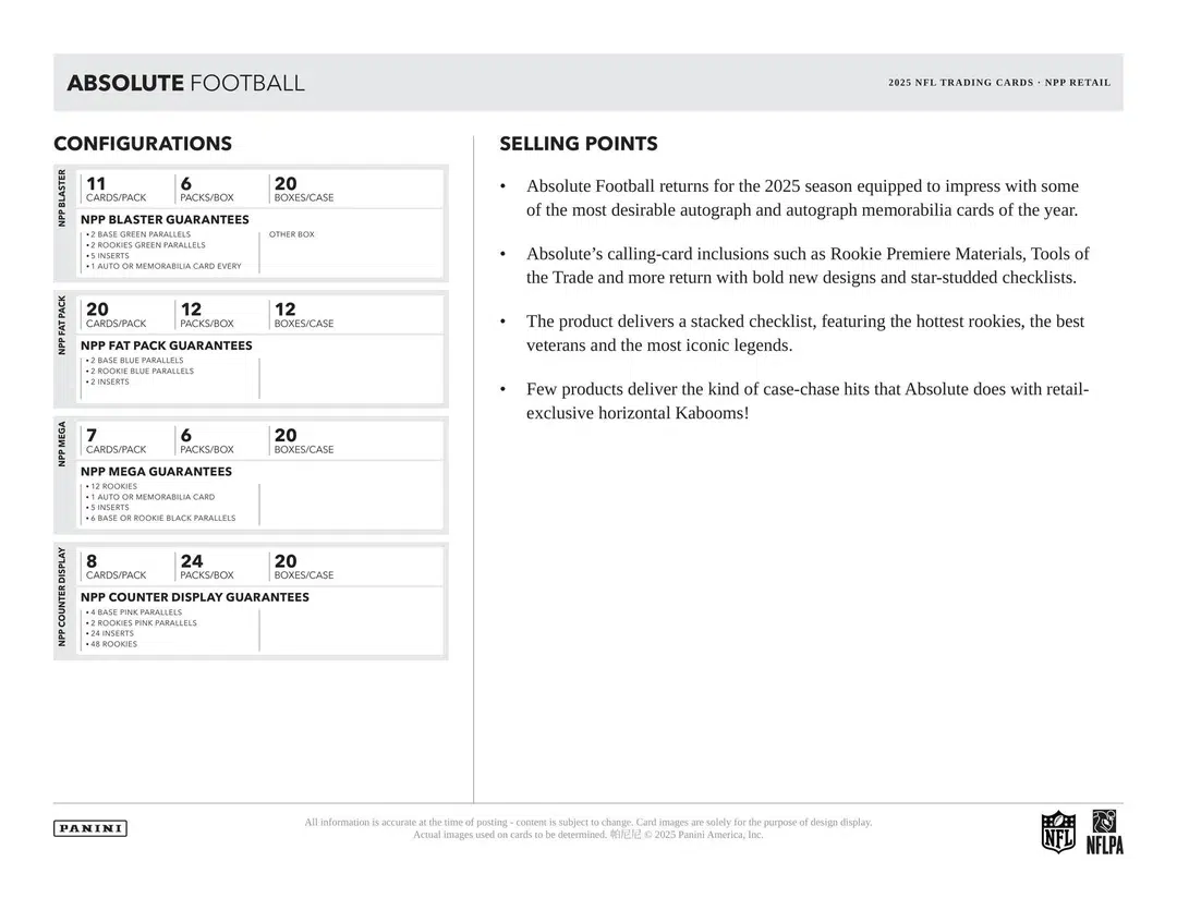 2025 Panini Absolute Football NFL Mega Box – Sealed
